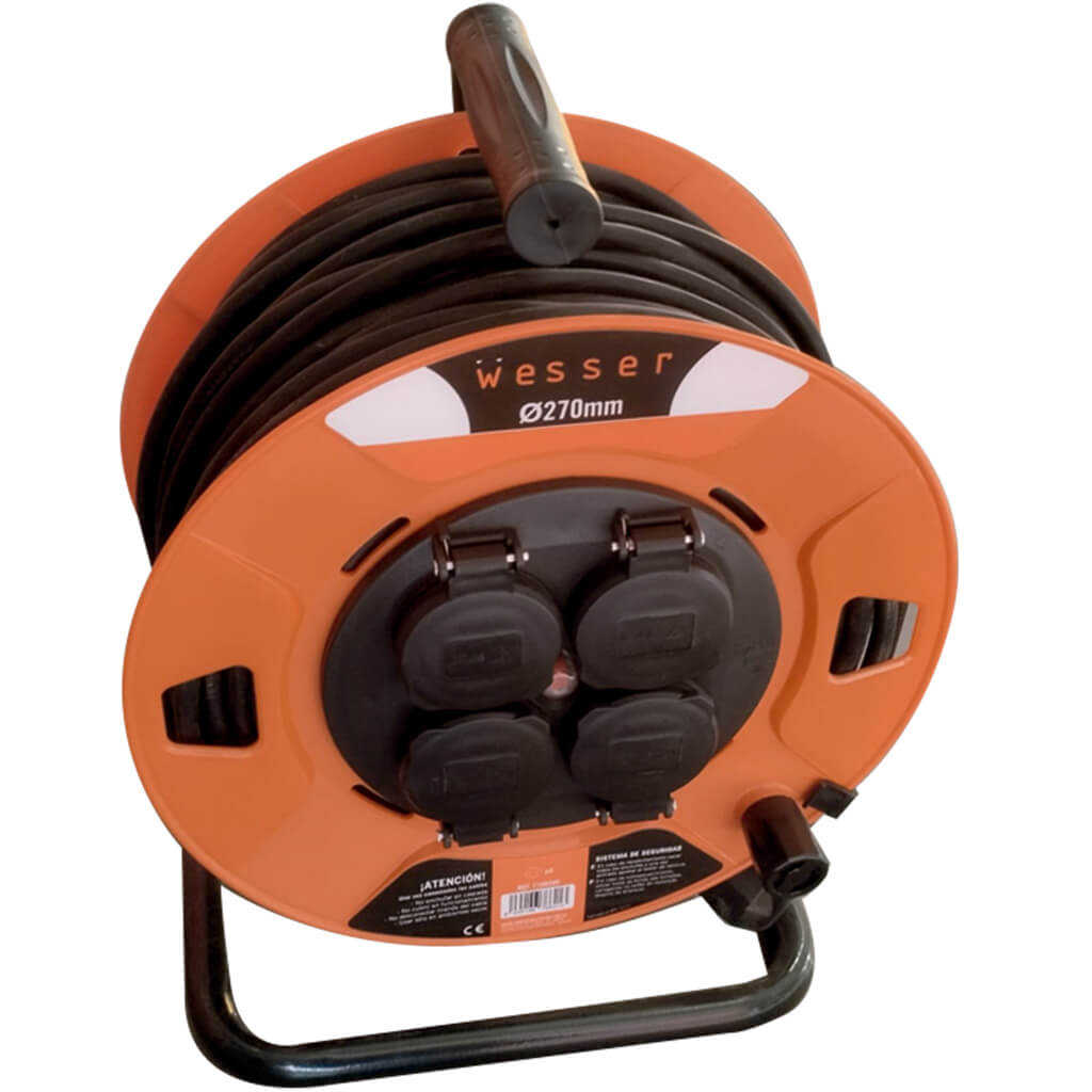 Alquiler enrolla cable con carcasa 4 tomas 50 m, prolongador eléctrico 230v
