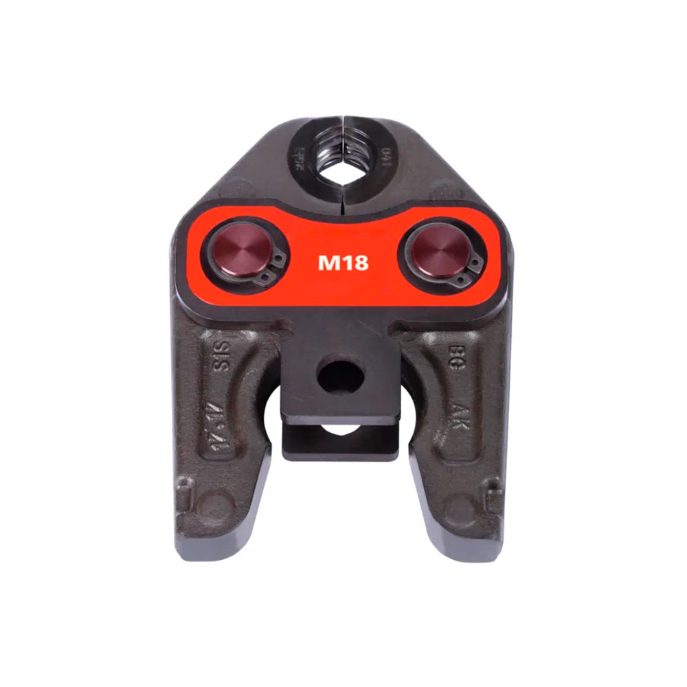 La mordaza de prensar estándar M18 está diseñada para un prensado seguro y exacto en sistemas de racores metálicos hasta Ø 18 mm. Incorpora tratamiento DURA LAZR TEC con endurecimiento láser selectivo en zonas de mayor esfuerzo, lo que reduce el desgaste y mantiene la precisión del contorno durante toda su vida útil.