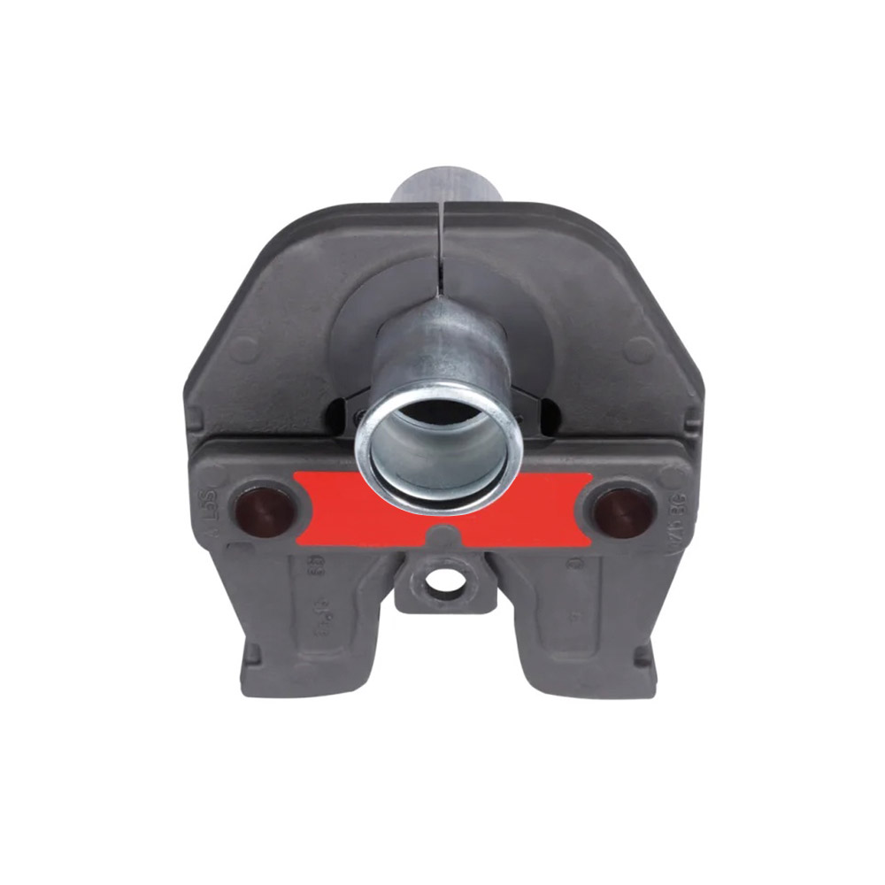 Fabricada en acero especial forjado, altamente resistente y flexible, ofrece una vida útil prolongada y un prensado homogéneo. El mecanismo sincronizado de tres pernos permite abrir la mordaza con un solo dedo, mejorando la ergonomía y facilitando el trabajo en obra. Apta para prensas electrohidráulicas con empuje axial de 32–34 kN.