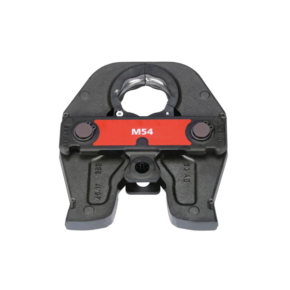 La mordaza de prensar estándar M54 (conjunto de 3 elementos) está diseñada para realizar prensados seguros y precisos en sistemas de racores metálicos de Ø 54 mm (perfil M), compatibles con cobre, acero al carbono y acero inoxidable. Incorpora tratamiento DURA LAZR TEC con endurecimiento láser selectivo en zonas de mayor esfuerzo para mantener la precisión del contorno y reducir el desgaste.